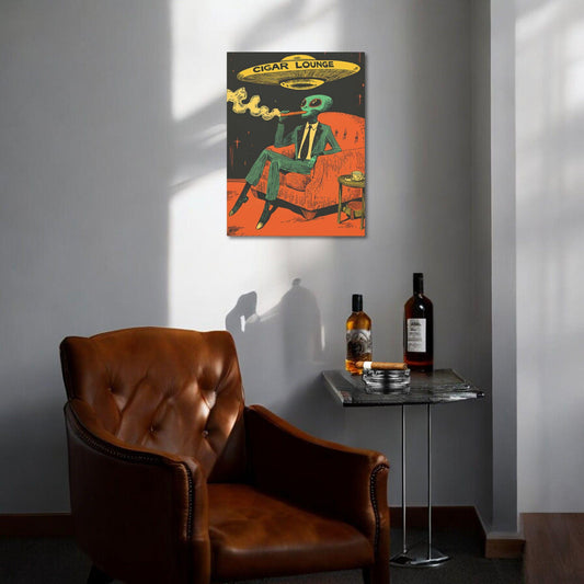 Cigar Lounge Alien UFO Canvas