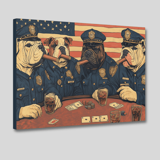 Police Bulldogs Vintage Cigars & Poker Canvas