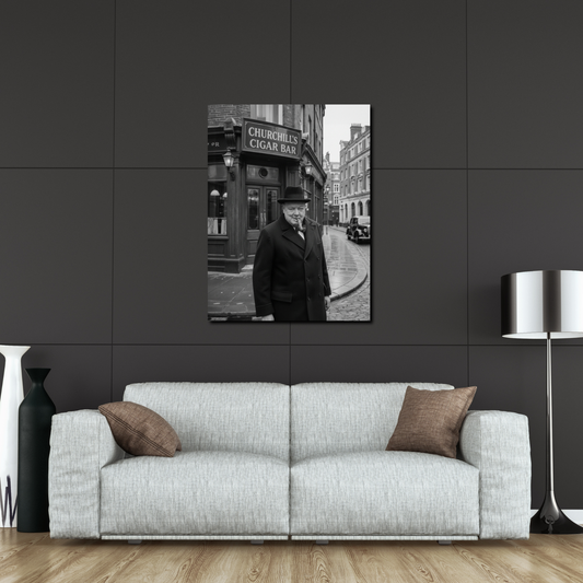 Winston Churchill Cigar Bar Canvas Black & White| Vintage British Cigar Lounge Wall Art