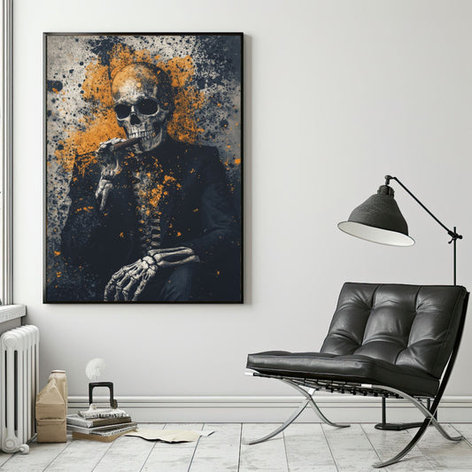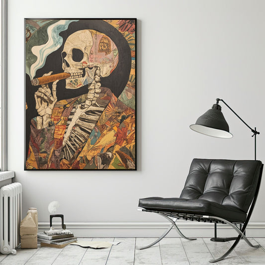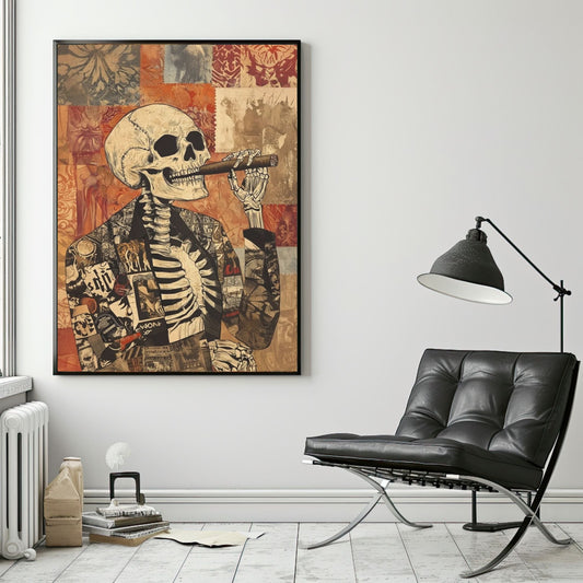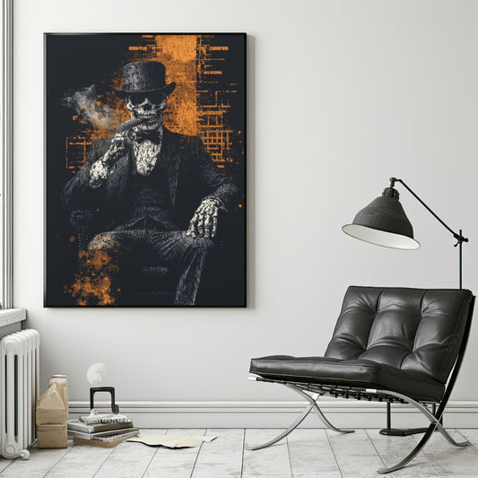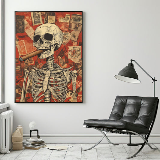 Grunge Skeleton Cigar Lounge Wall Art Poster 1