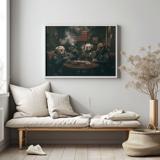 Police Bulldogs Dark Room Smoking Cigars & Poker Poster