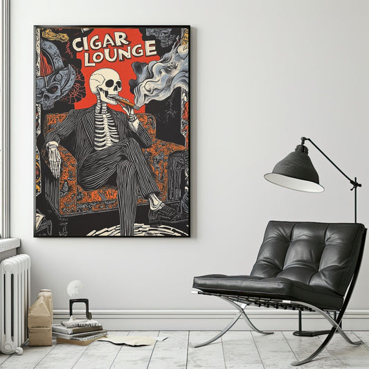 Retro Skeleton Cigar Lounge Wall Art Poster 1