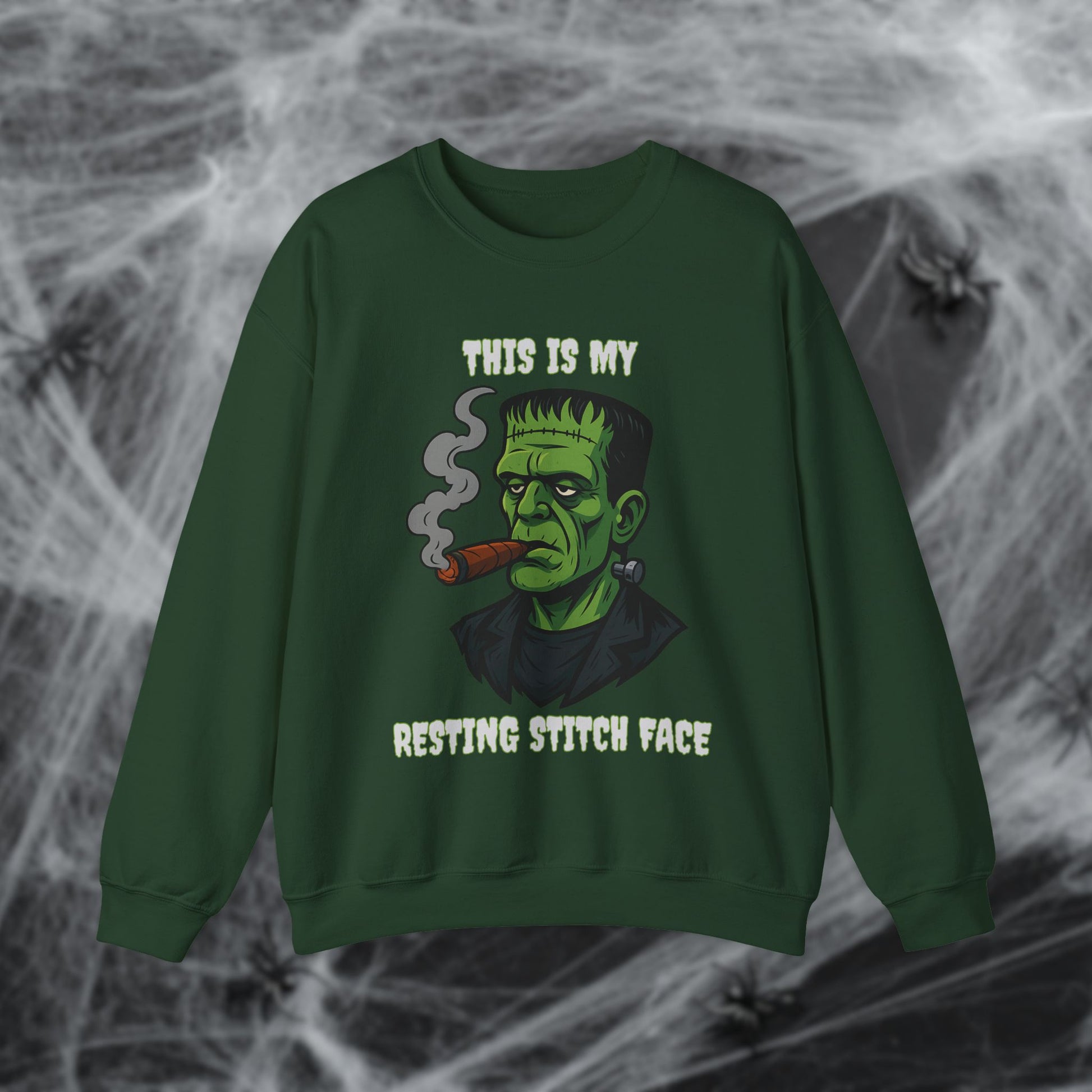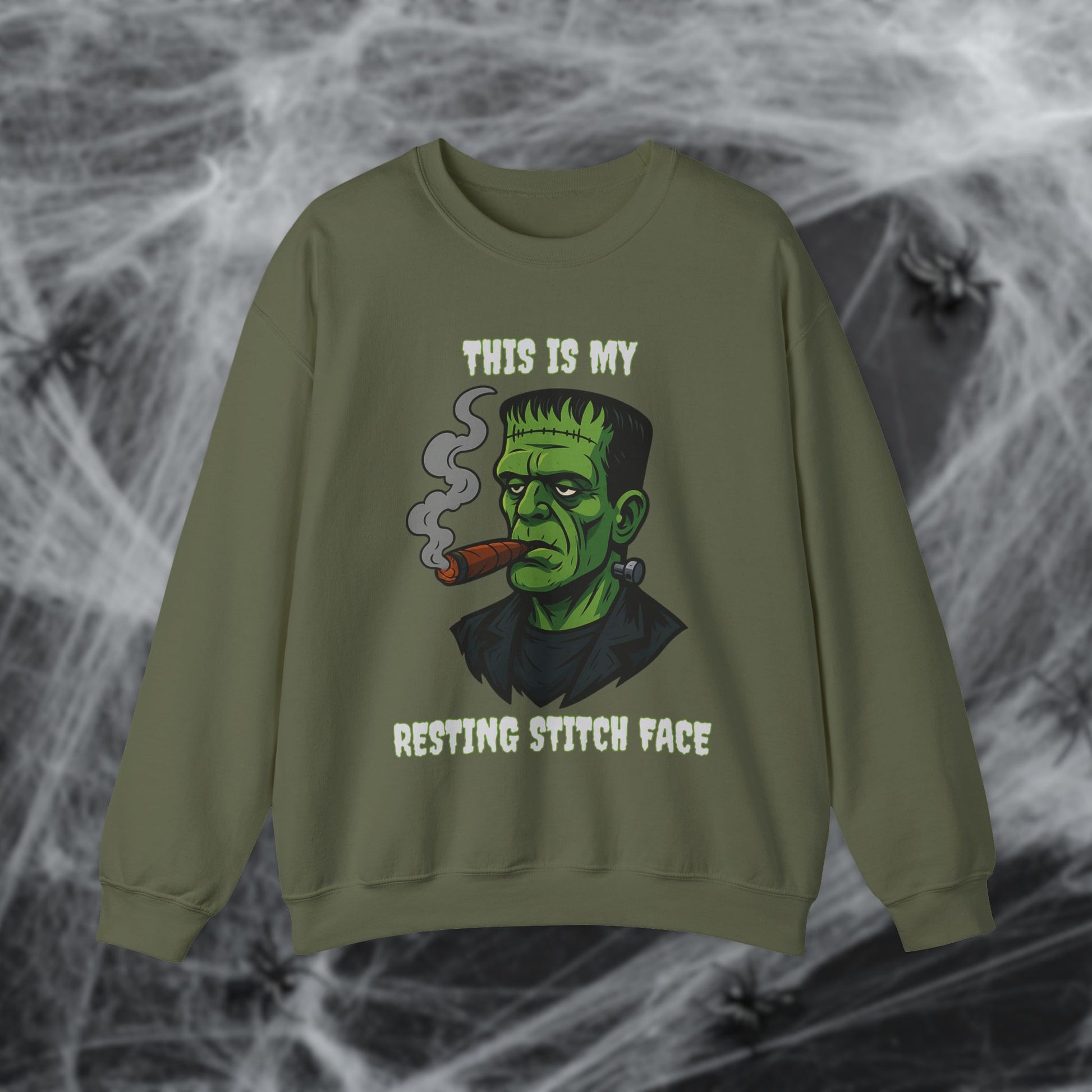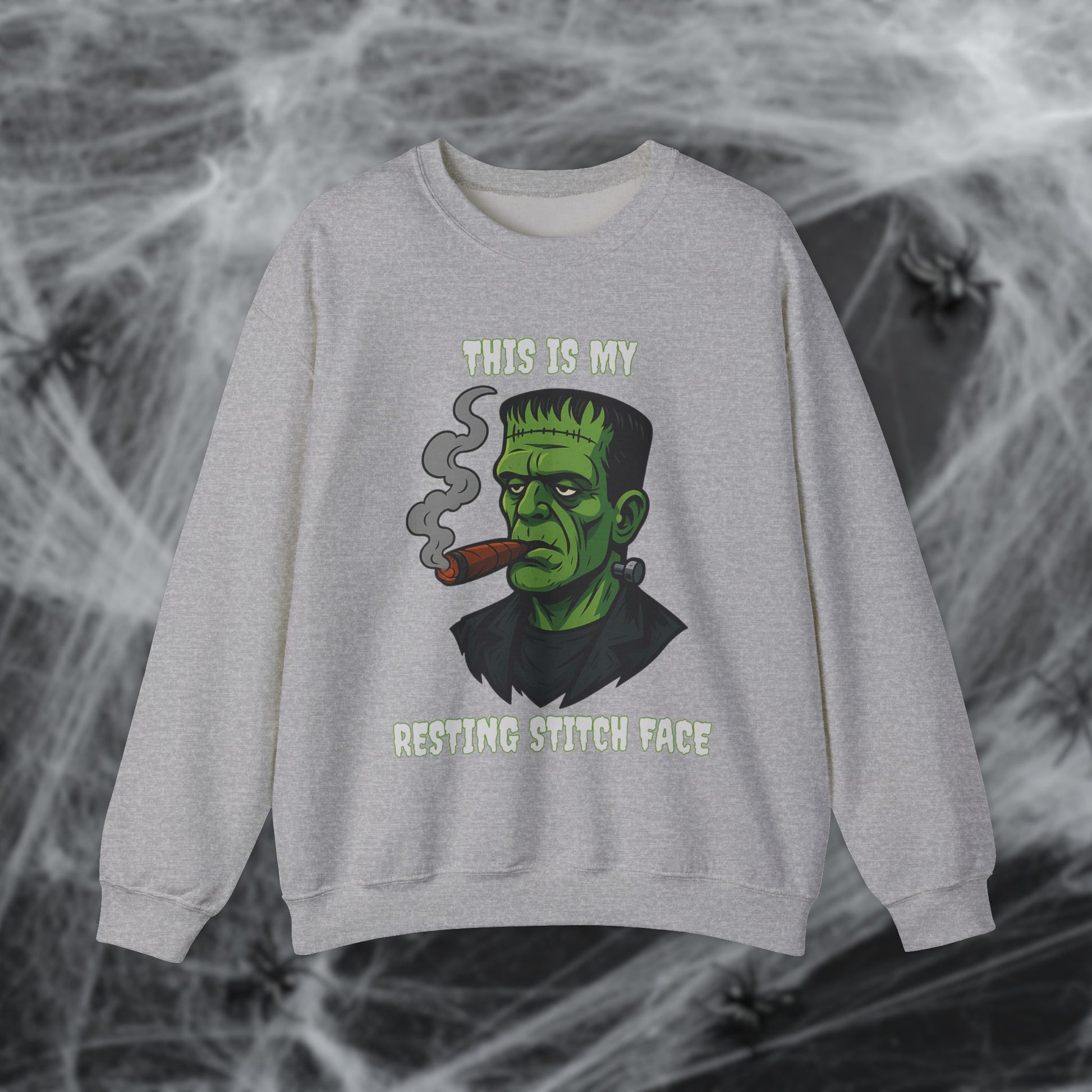 Stay warm this Halloween while wearing “THIS IS MY RESTING STITCH FACE” with Frankenstein and his trusty cigar. This Frankenstein cigar sweatshirt is perfect for cigar smokers who love spooky season and a good laugh. Featuring Frankie puffing away while strolling like a classic monster, this sweatshirt is both cozy and eye-catching—ideal for cigar lounges, trick-or-treat nights, or any Halloween party. Available in 8 color options, it’s a must-have for cigar lovers who want to keep it creepy and comfortable.