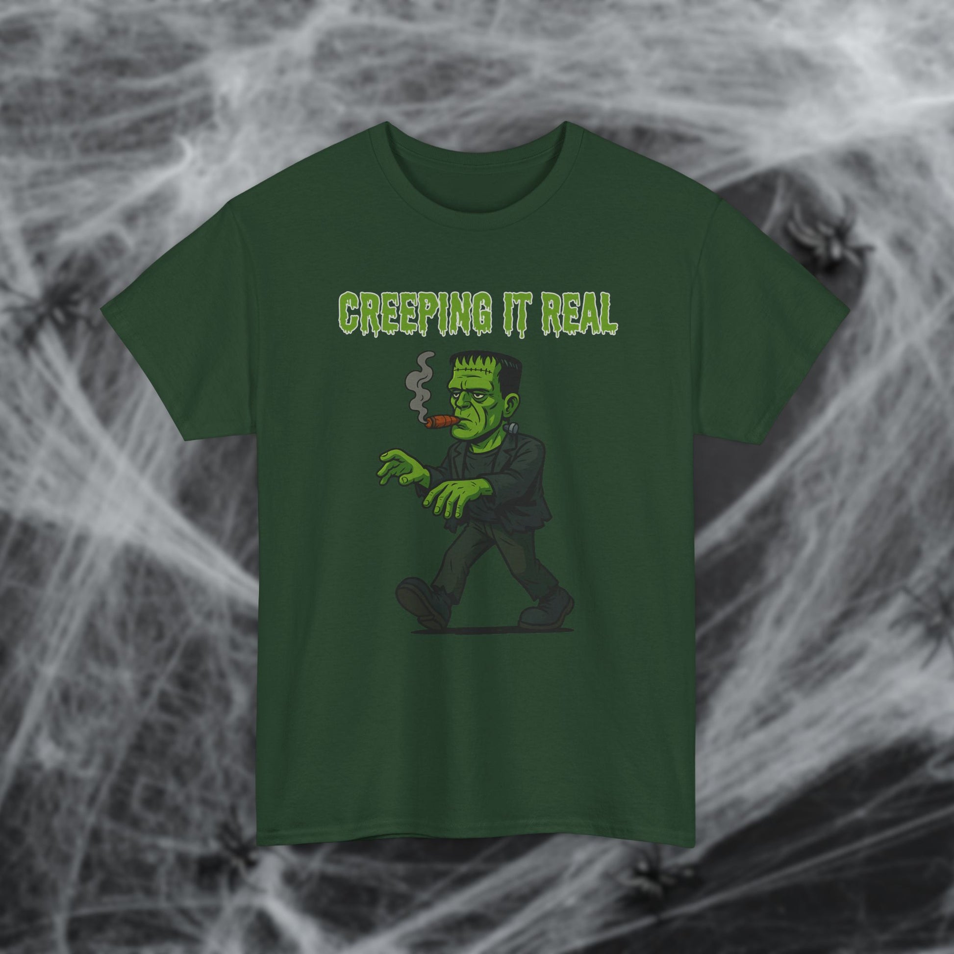 Light up your Halloween style with this Frankenstein cigar tee! Perfect for cigar smokers who like to keep things spooky, this shirt shows Frankie himself puffing away while “creeping it real.” Whether you’re handing out candy, hitting a cigar lounge, or kicking back with your favorite stick, this shirt brings monster vibes and smoke-filled laughs. Available in 8 bold colors, it’s a must-have for cigar lovers who want to celebrate Halloween in style.