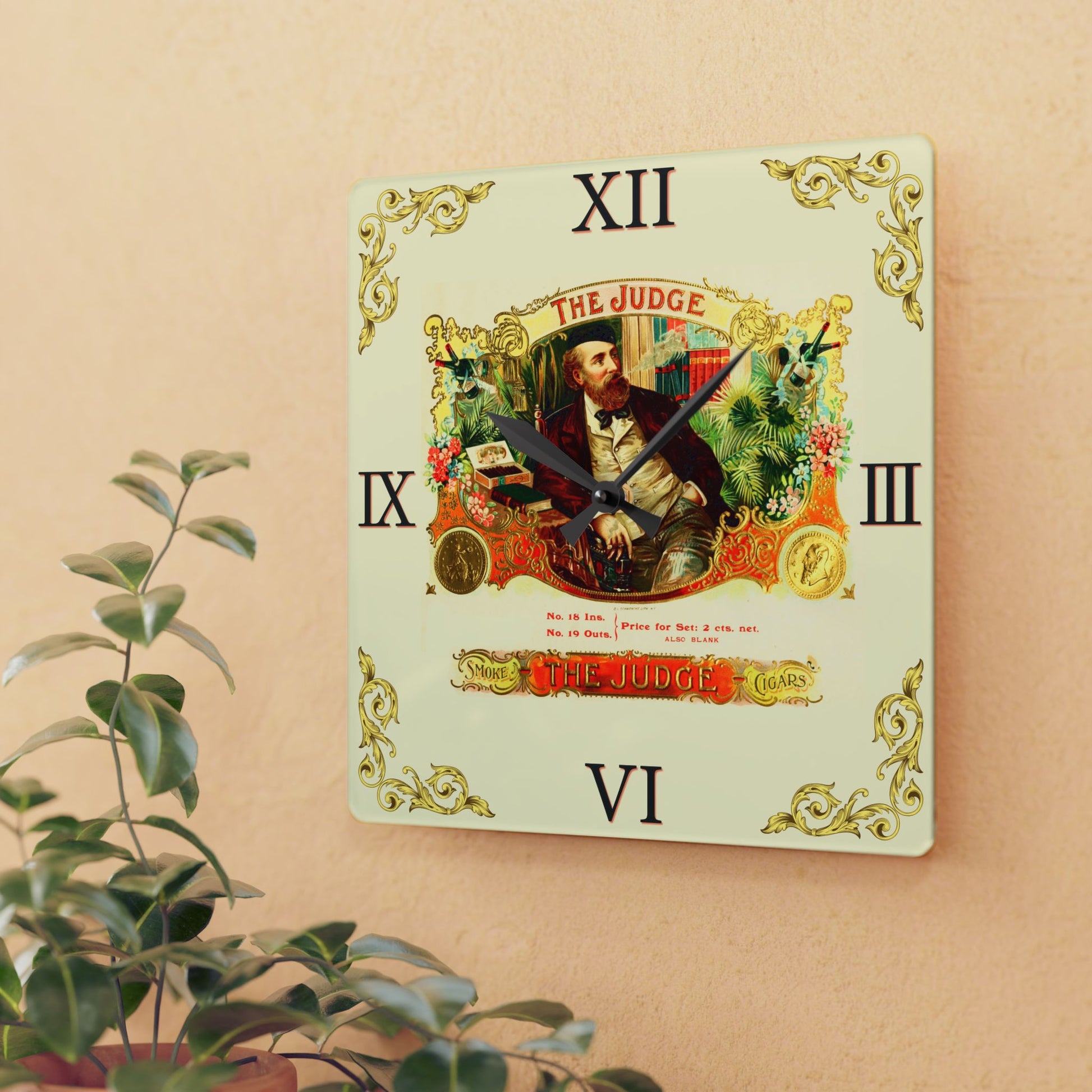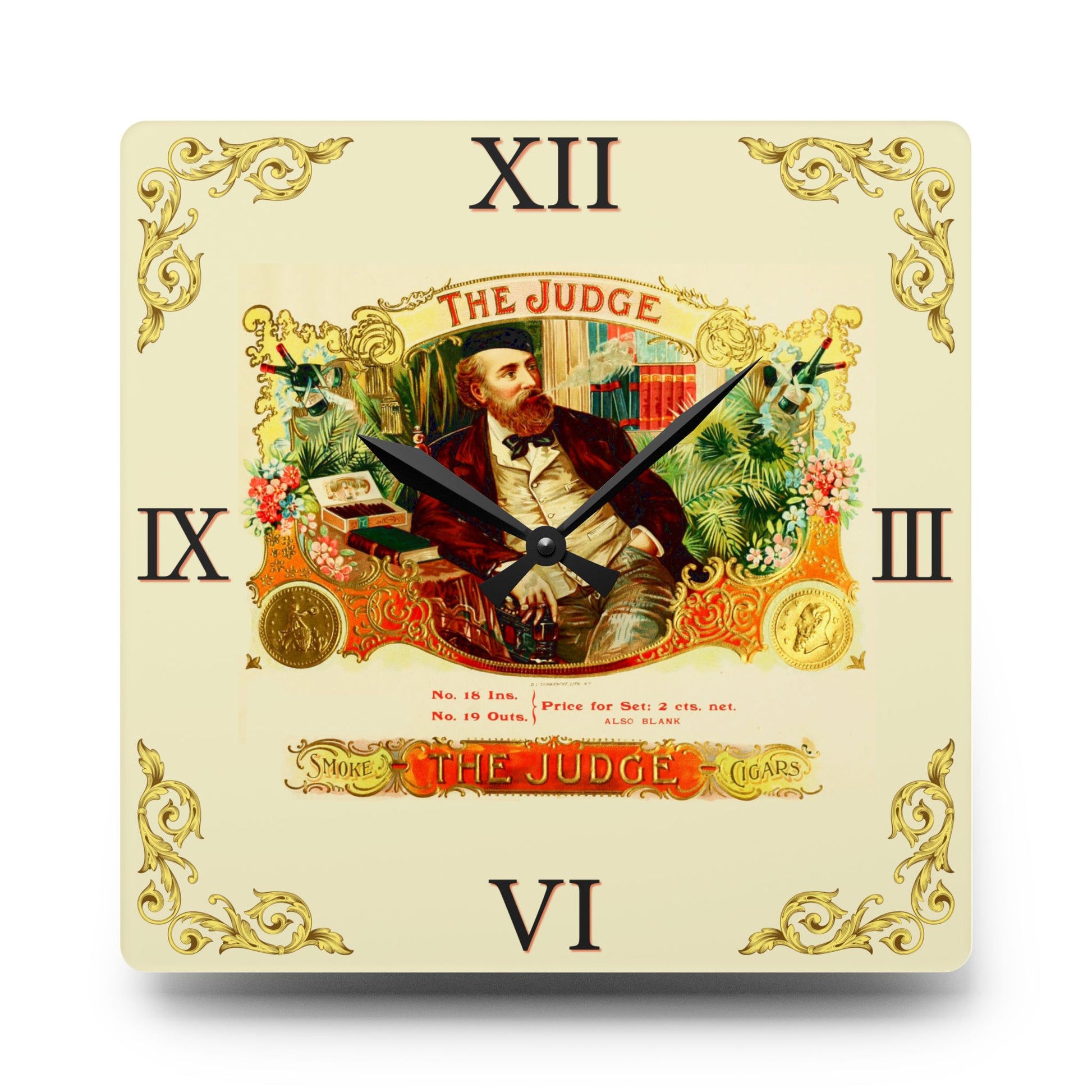 Elevate your decor with our stunning The Judge Cigar Box Label Clock, a perfect addition to your cigar lounge, man cave, whiskey room, or home bourbon bar. Measuring a versatile 10.75" x 10.75", this easy-to-hang clock features a unique vintage retro cigar box label design. The design adds a touch of sophistication and nostalgia to your space while keeping you on time for your next smoke session. Whether you're a cigar aficionado or simply appreciate vintage artistry, this clock is sure to be a conversation starter and a stylish accessory for any setting. Don’t miss out on this timeless piece!
